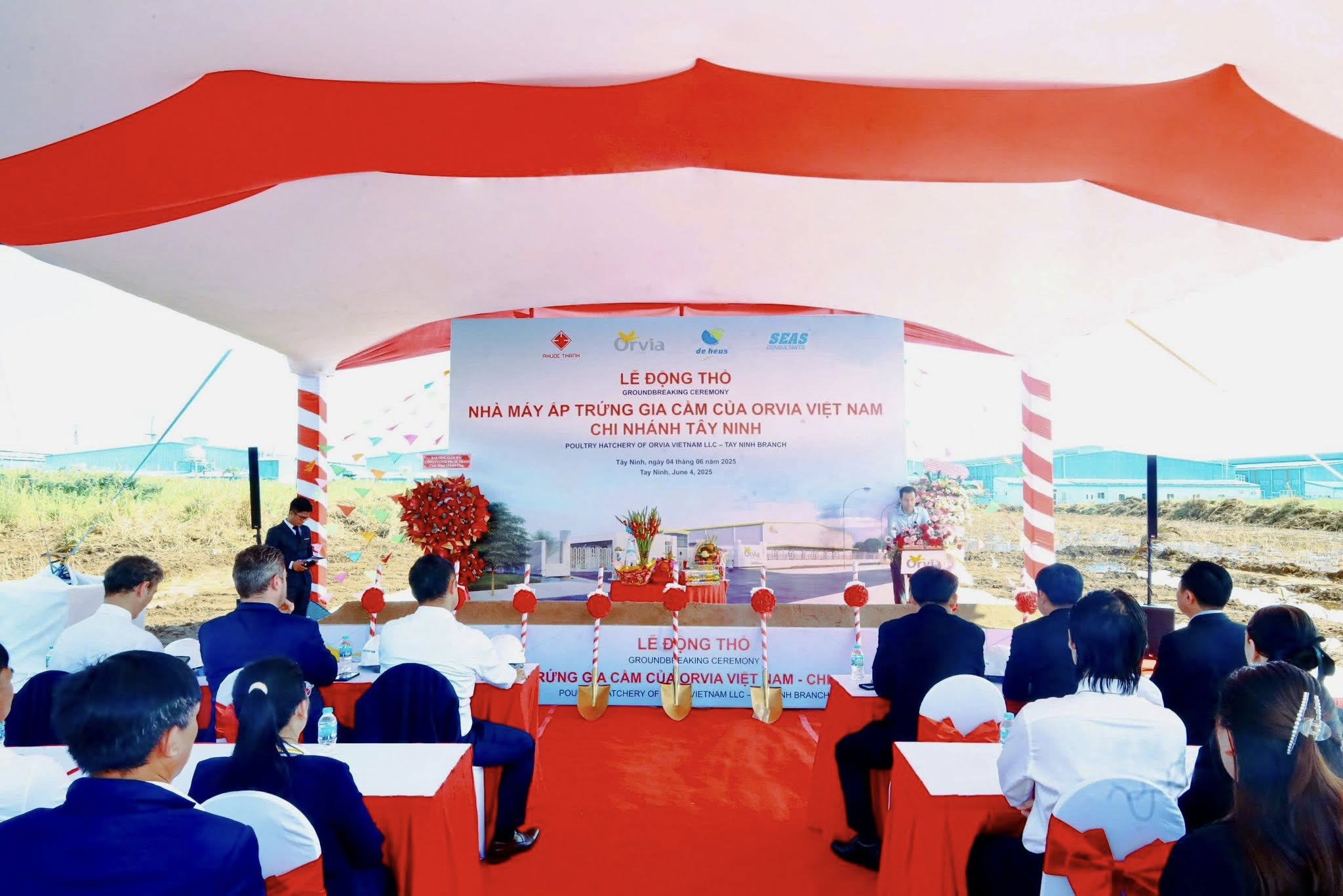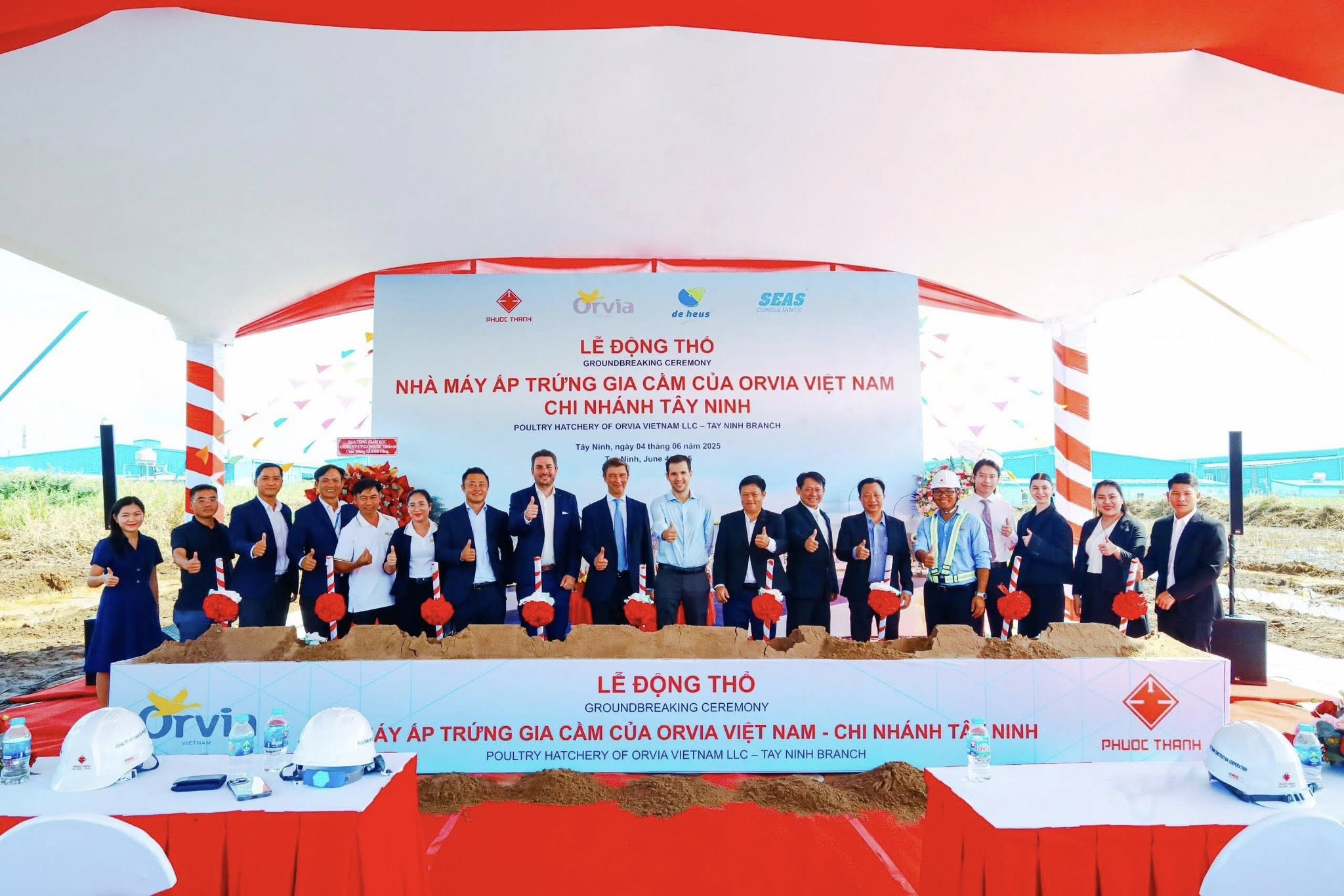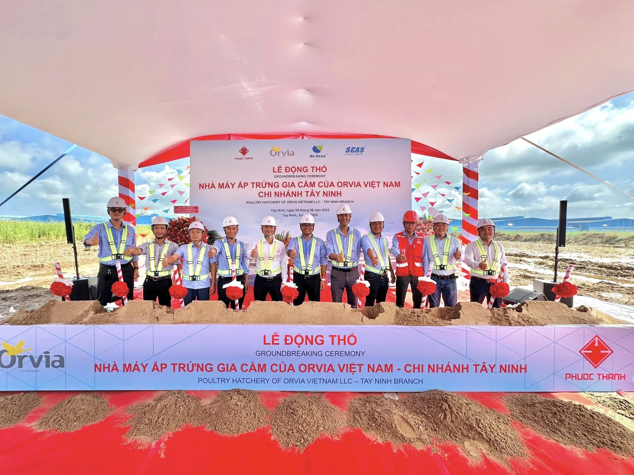 Recently, Phuoc Thanh Construction Joint Stock Company partnered with the Investor to organize the groundbreaking ceremony of the Poultry Hatchery Factory of Orvia Vietnam Co., Ltd. – Tay Ninh Branch, located in Thanh Thanh Cong Industrial Park, Tay Ninh Province.