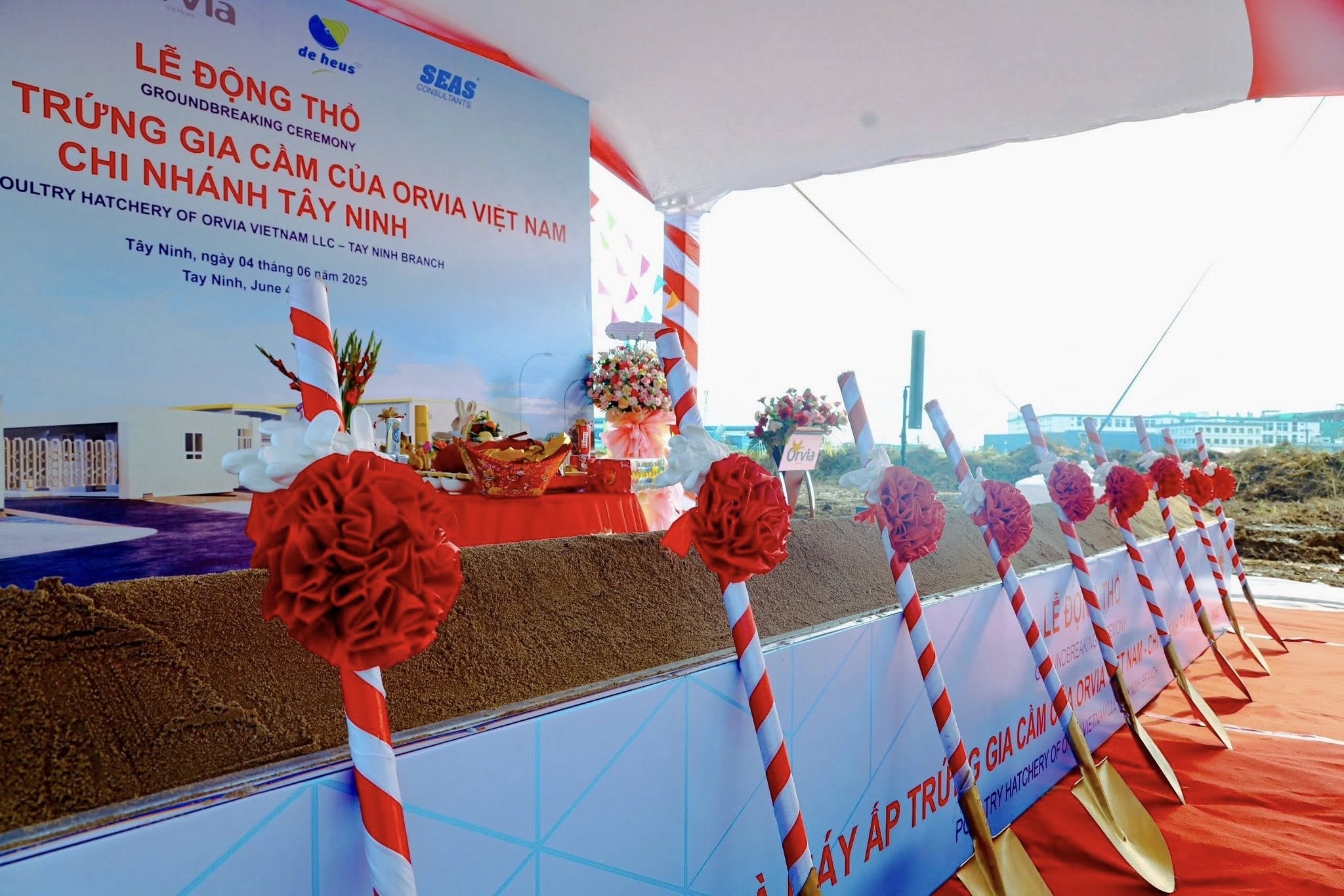 The project covers a total area of 15,000 m² and is the result of a strategic collaboration between prestigious partners: De Heus Group – Orvia France and Orvia Vietnam. The common goal is to build a modern, high-tech poultry hatchery factory that contributes to the sustainable development of the domestic poultry industry.