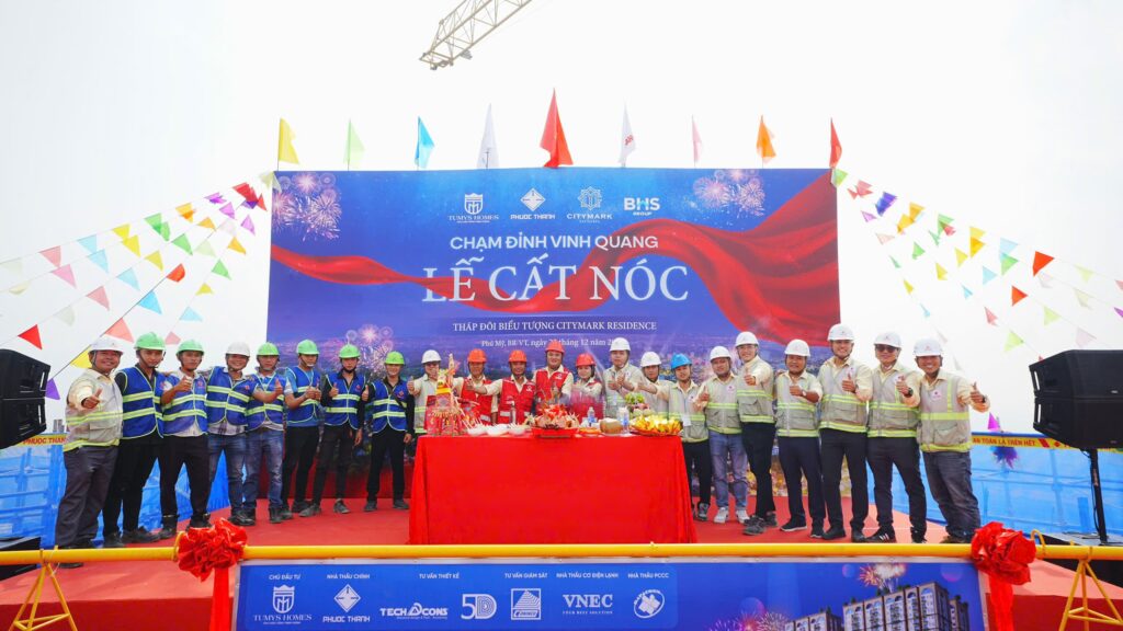 On the morning of December 22, 2024, Phuoc Thanh Construction Joint Stock Company, in cooperation with the Investor Tumys Homes, successfully organized the Topping-out Ceremony of the CityMark Residence project. The event was held in a solemn atmosphere, with the attendance of local authorities, representatives of the Investor Tumys Homes, the General Contractor Phuoc Thanh, and numerous distinguished guests.
