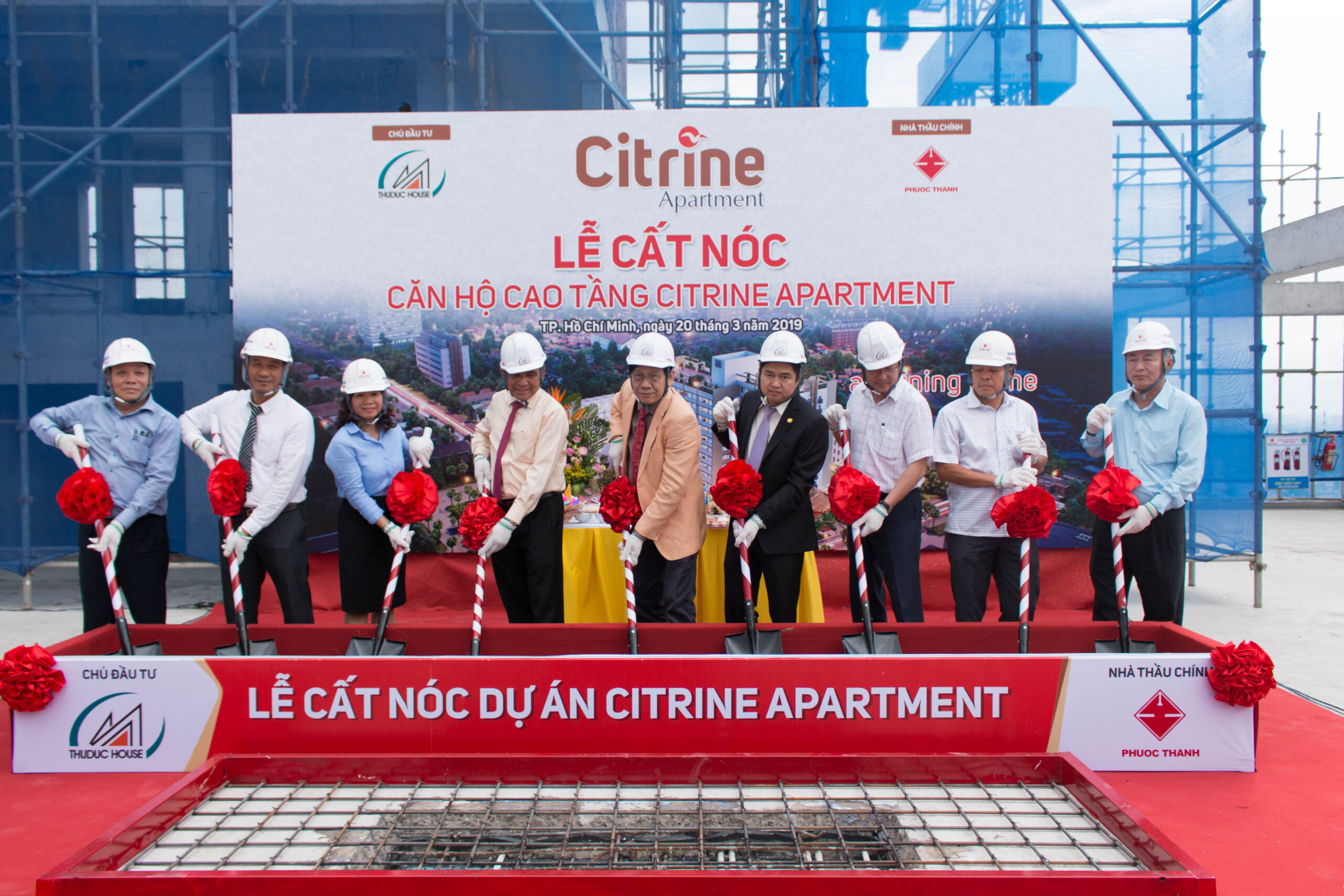 At 3:00 p.m. on 20 March 2019, Phuoc Thanh Construction Joint Stock Company, together with Thu Duc Housing Development Joint Stock Company (TDH), held the topping-out ceremony for the high-rise Citrine Apartment on Tang Nhon Phu Street, District 9, Ho Chi Minh City.