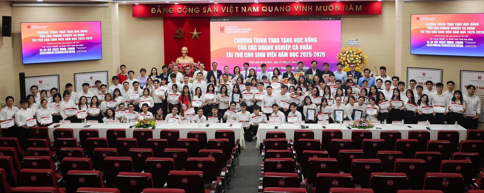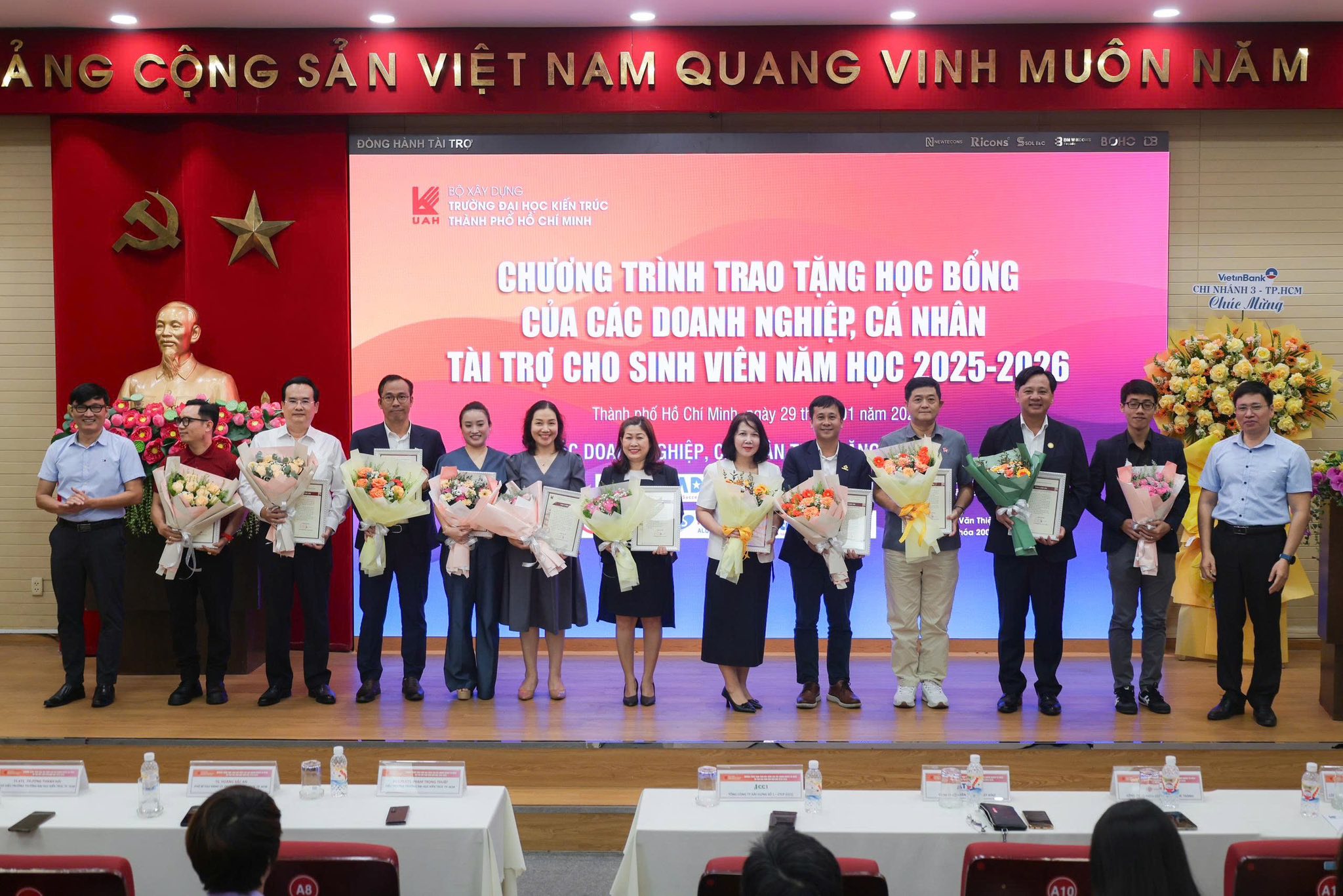 On the morning of 29 January 2026, a representative of the Board of Management of Phuoc Thanh Construction Corporation attended the Scholarship Awarding Programme for the 2025–2026 academic year, organised by the University of Architecture Ho Chi Minh City with the participation of corporate and individual sponsors.