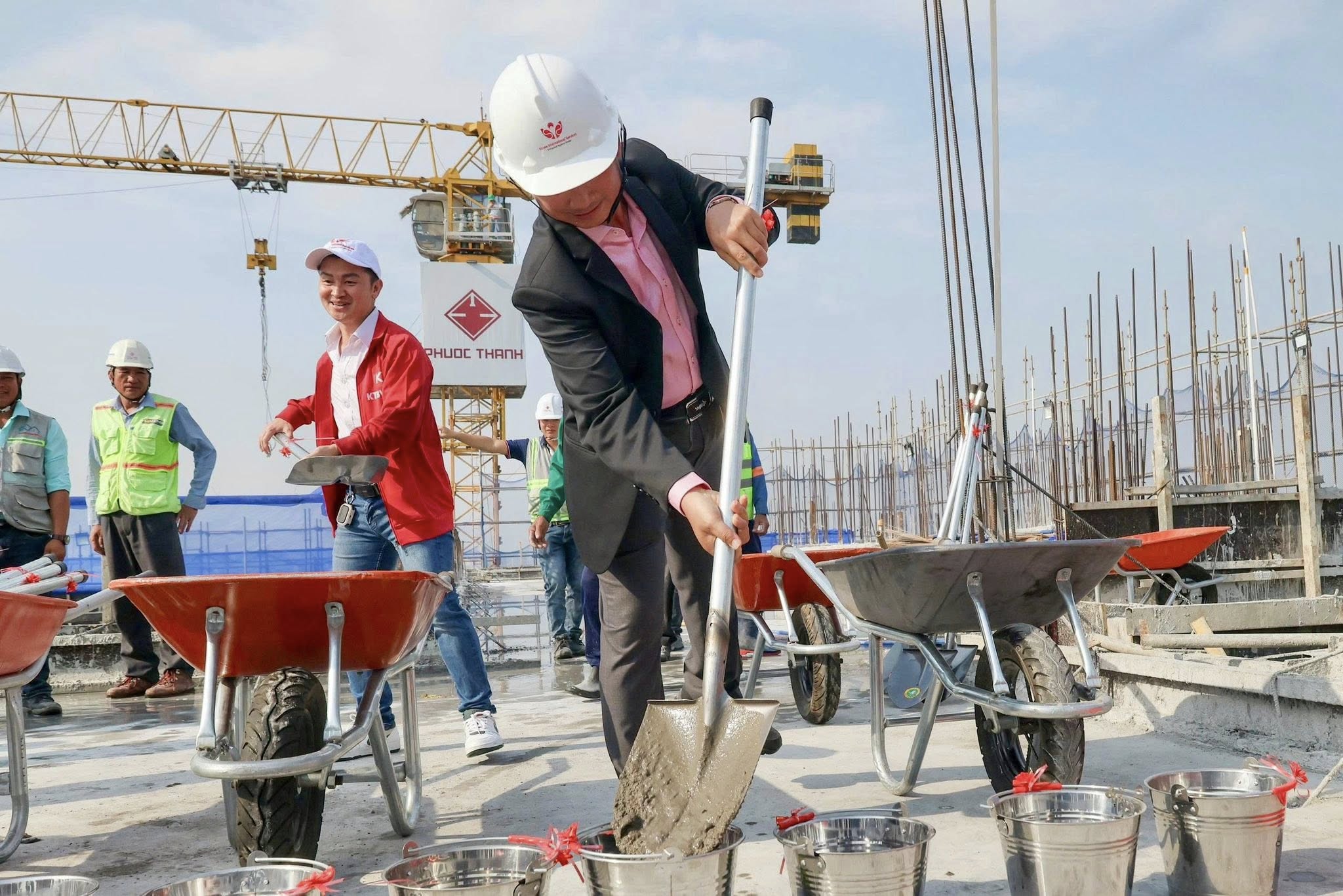 During the ceremony, Dr. Tran Chi Cuong, representing the Project Owner, together with his associates, shared insights into the significance and strategic importance of the project in advancing research, training, and specialised treatment of stroke in Viet Nam. Following this, the delegates carried out the final concrete pouring, officially marking the topping-out milestone of the project.