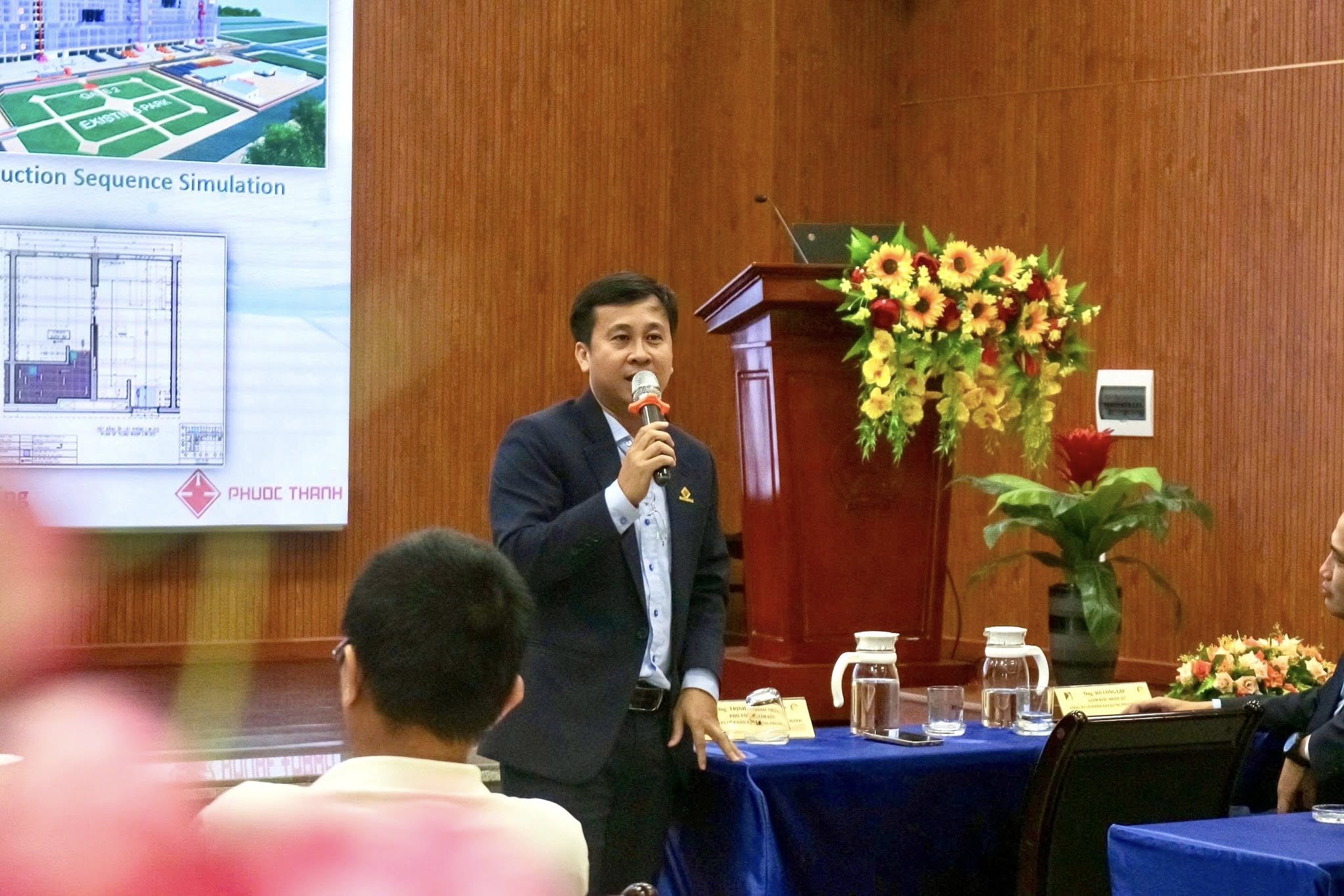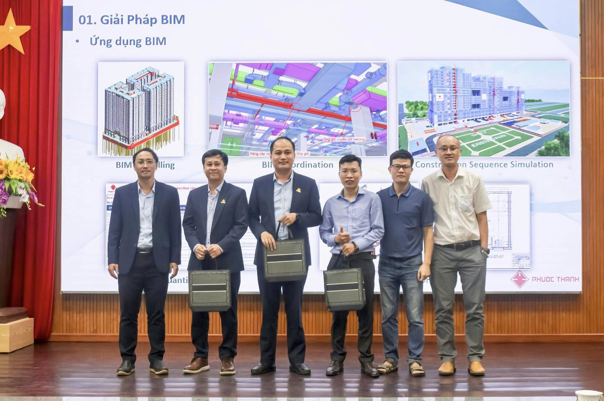 Trong khuôn khổ buổi lễ, Đại diện phòng BIM Phước Thành cũng giới thiệu Giải pháp BIM đang áp dụng trong quản lý tiến độ, khối lượng, biện pháp thi công và tài chính tại công trường.