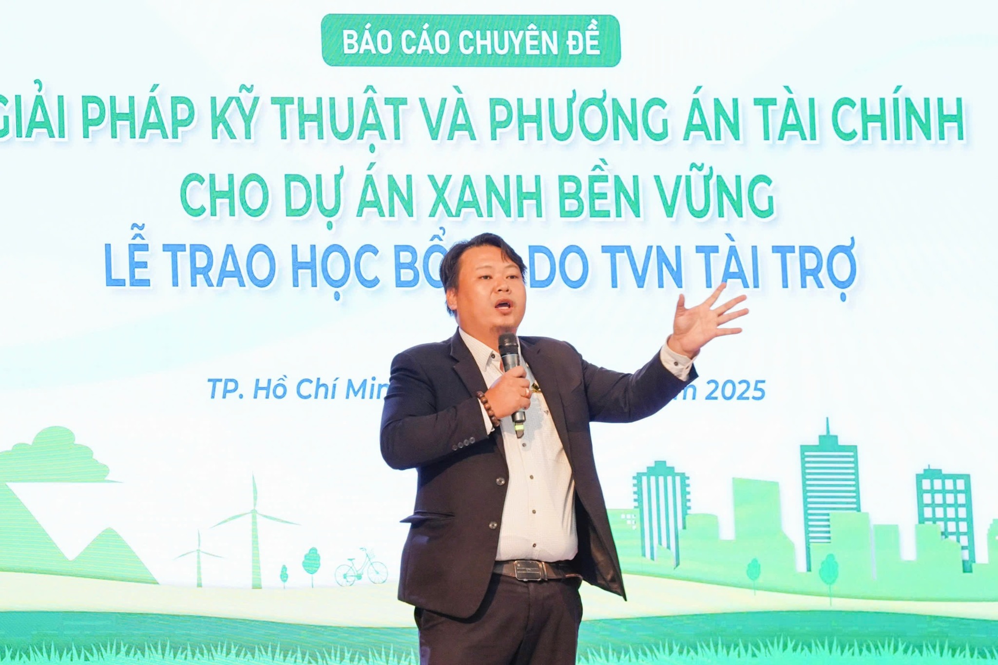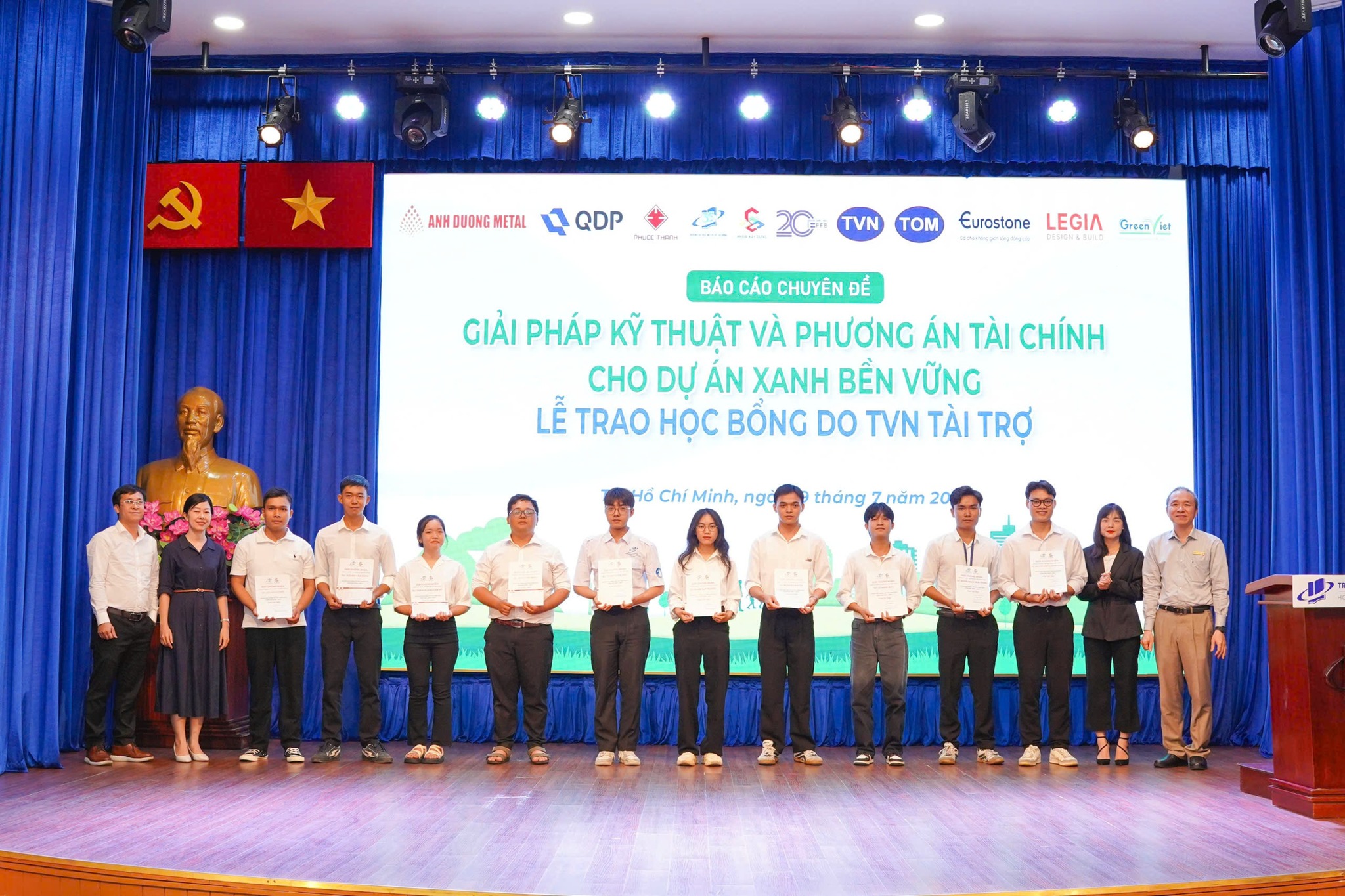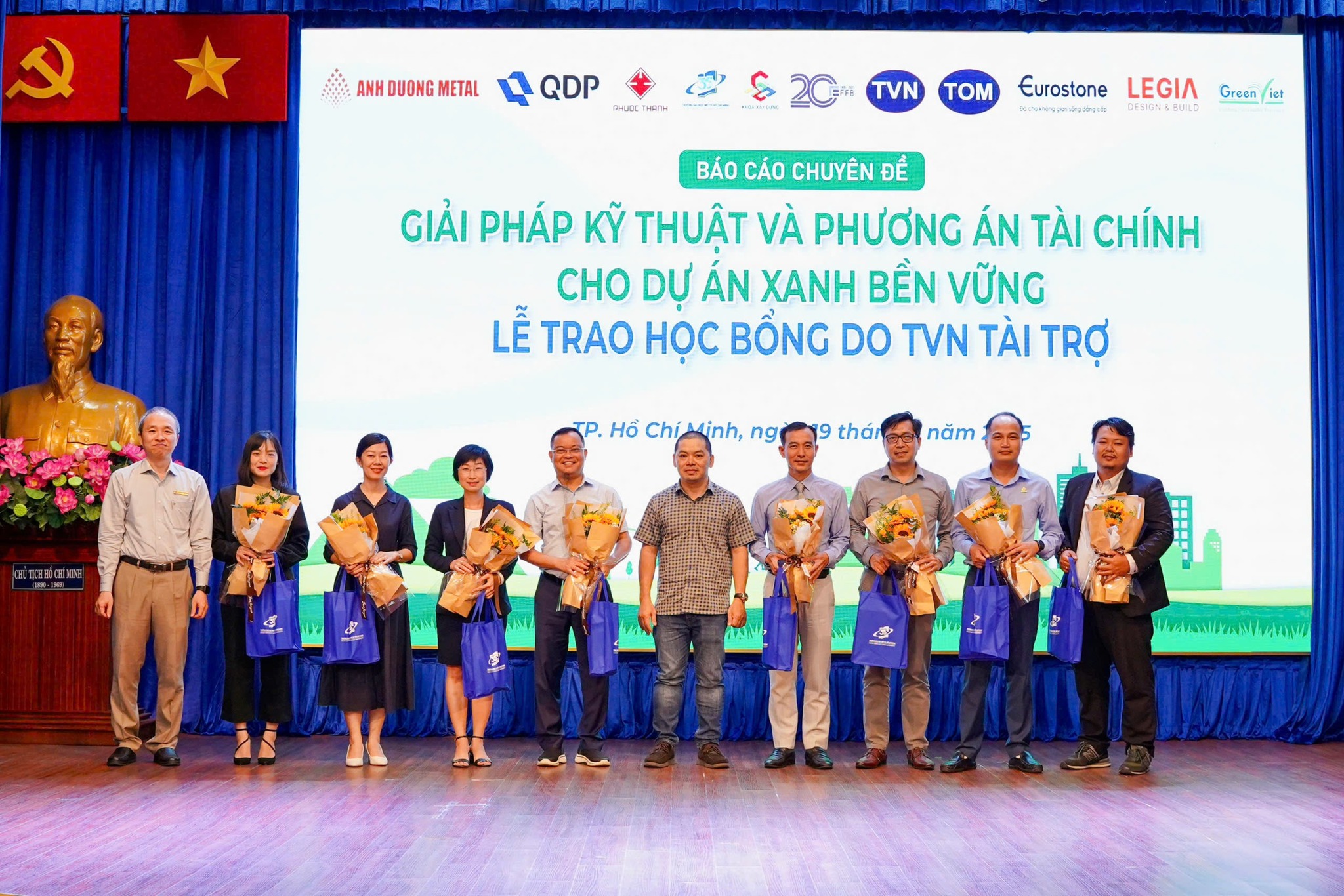 近日,福成建设股份公司董事会参加了在胡志明市开放大学举行的专题报告会,主题为《绿色与可持续项目的技术解决方案与财务方案》,并结合了由 TVN 赞助的奖学金颁发仪式。该活动由建筑学院与金融–银行学院联合举办,旨在为学生提供动力并补充实践知识。
