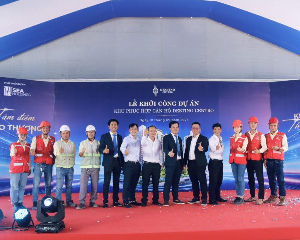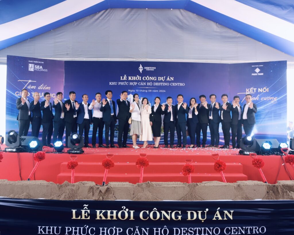 2024年9月10日上午,Destino Centro公寓综合体隆重举行奠基仪式,活动成功举办,出席嘉宾包括当地政府代表、投资方Seaholdings、总承包商Phước Thành、监理单位以及战略合作伙伴。
