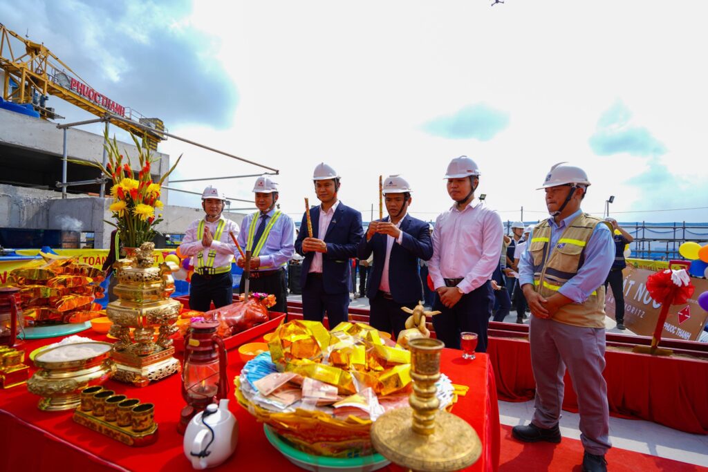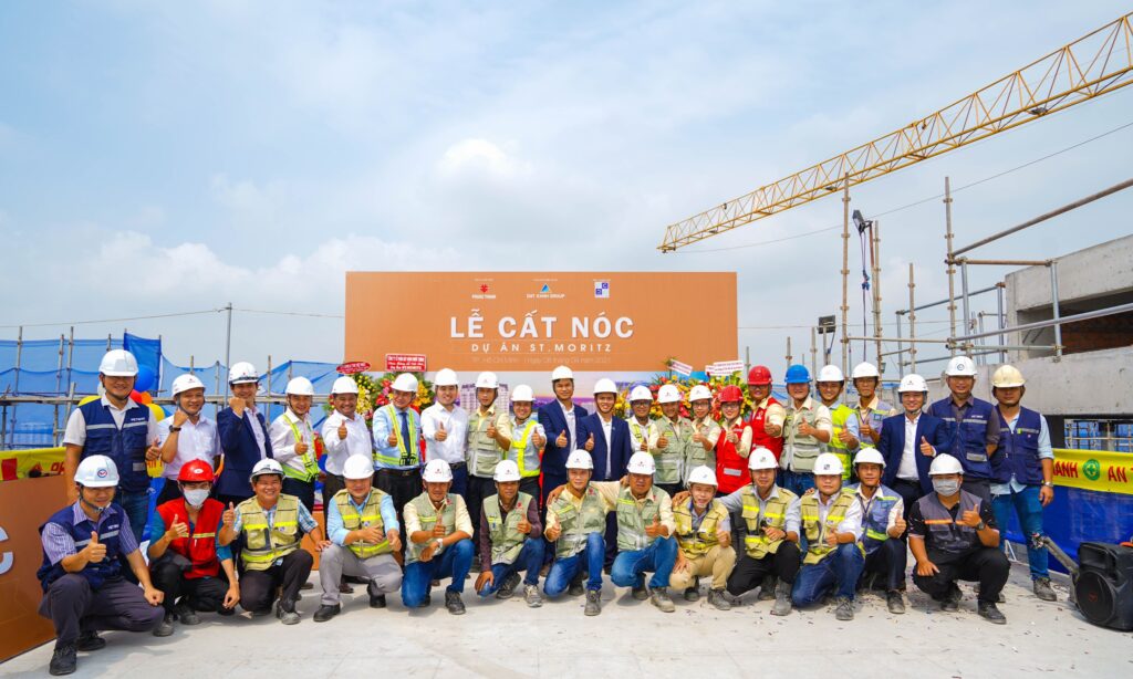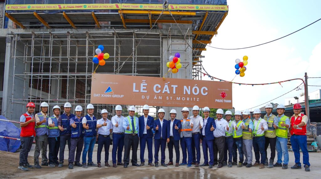 2021年4月8日上午,Đat Xanh集团与Phước Thành建设公司在胡志明市守德市范文同大道举行了 ST. Moritz 项目封顶仪式。