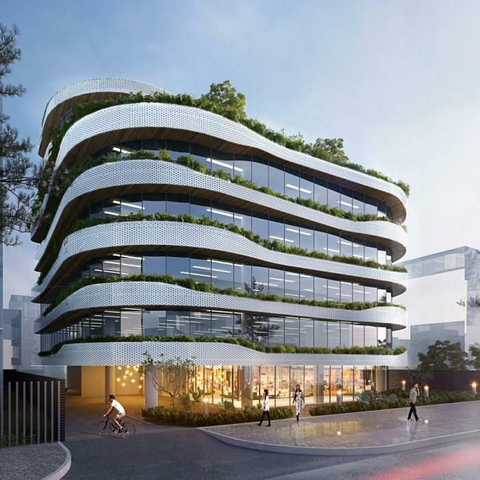 位于胡志明市的“外交大道”上,FIDECO 办公楼设计为地上 7 层和地下 2 层,占地面积 1,238 平方米,总建筑面积为 6,394.9 平方米,建筑密度约为 60%。其主要功能为办公与商业租赁。